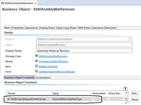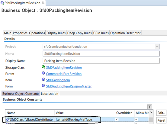 The value of the business constant attachment is Item: <propertyName> if the property is on the Item of the object that is the basis of the classification. The value of the business constant attachment will be ItemRevision: <propertyName> if the property is on the Item Revision of the object that is the basis of the classification. OOTB values are shown in the following figures.